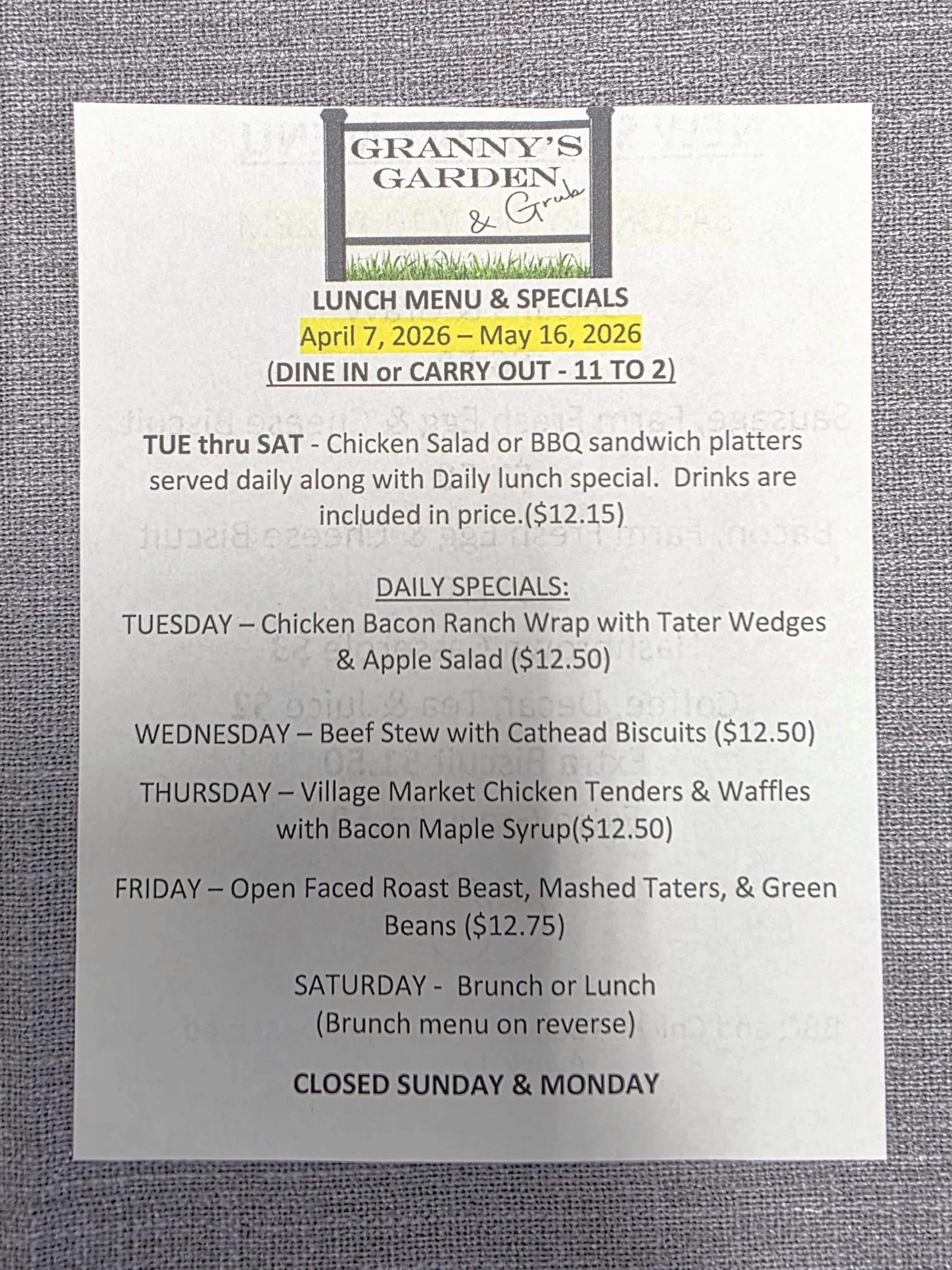 Welcome to Granny’s Garden! We are a family-owned and operated restaurant that delivers delicious, home-cooked food at prices that won’t break the bank. For 20 years, we have proudly served Boone County and our wonderful customers.